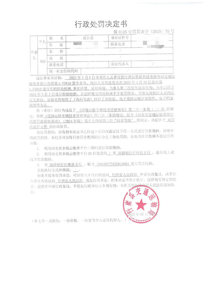 范合岳未按照规定的周期和频次对冀A.P5810进行车辆检验检测案
