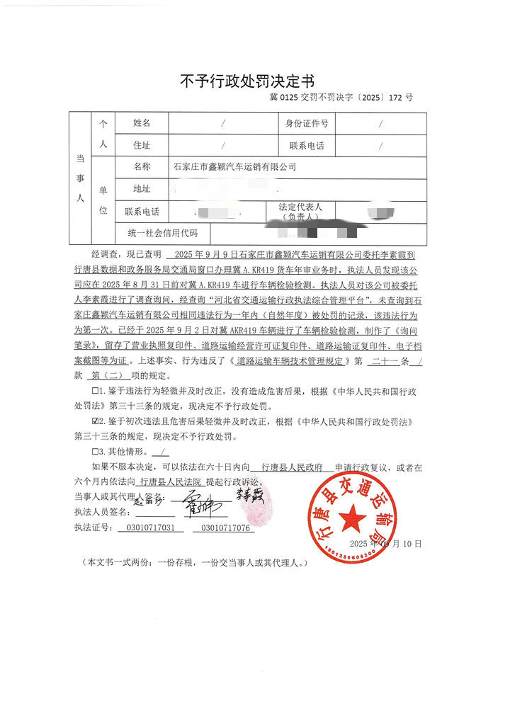石家庄鑫颖汽车运销有限公司未按照规定的周期和频次对冀A.KR419进行车辆检验检测案