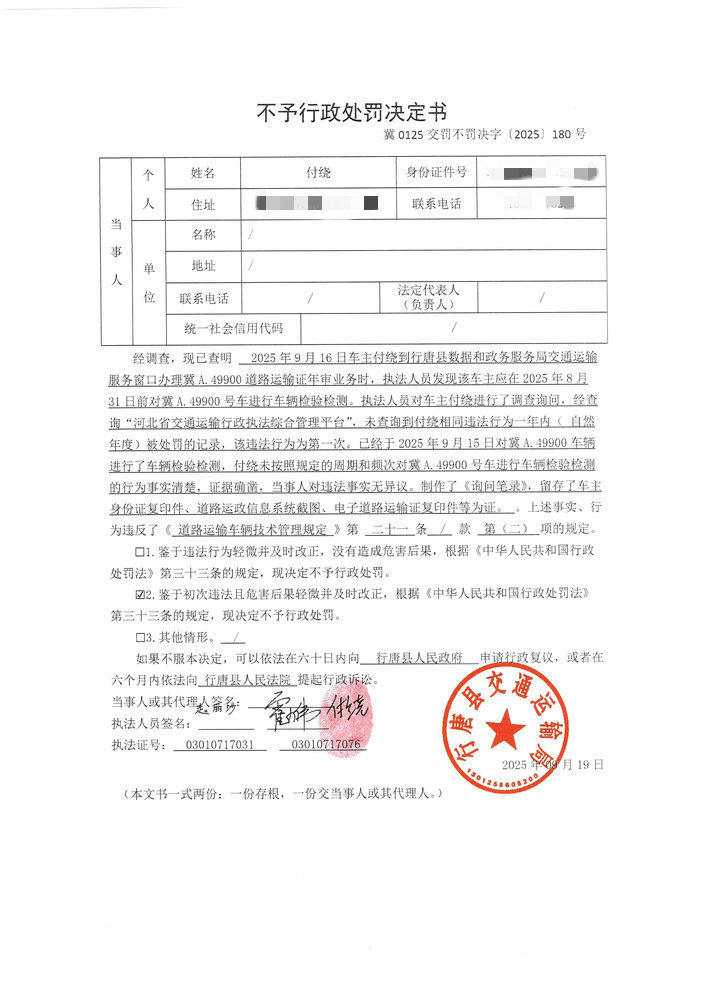 付绕未按照规定的周期和频次对冀A.49900进行车辆检验检测案