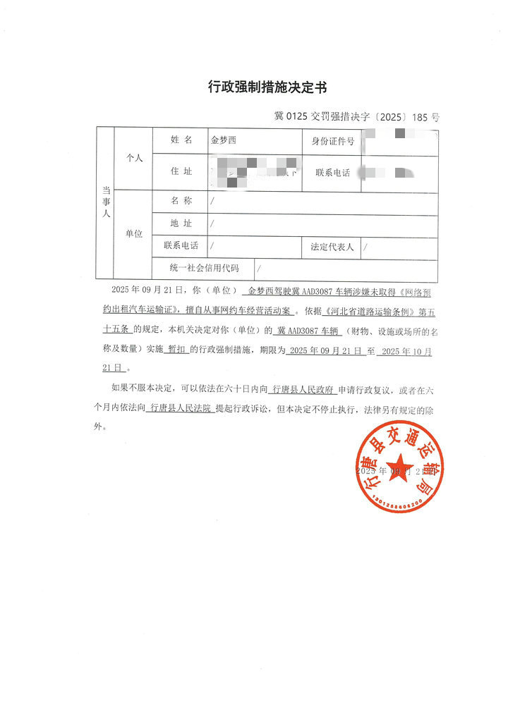 金梦西驾驶冀AAD3087车辆未取得《网络预约出租汽车运输证》擅自从事网约车经营活动案