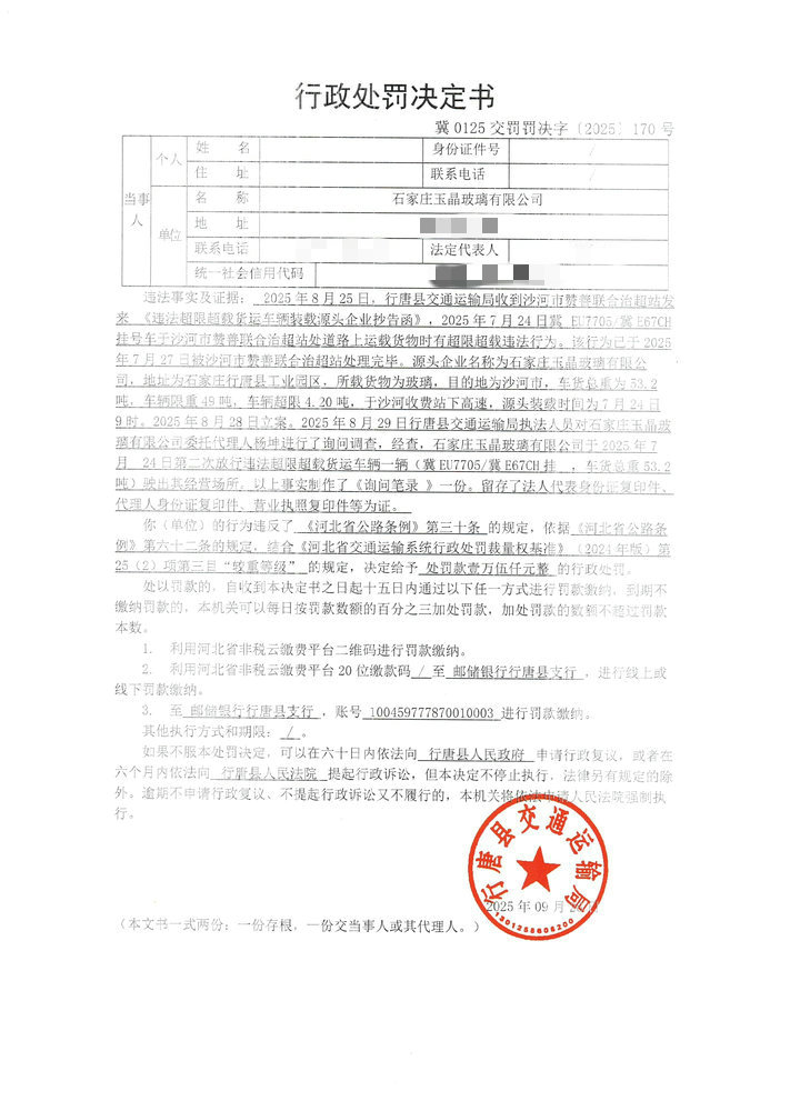 石家庄玉晶玻璃有限公司放行违法超限超载货运车辆驶出其经营场所案