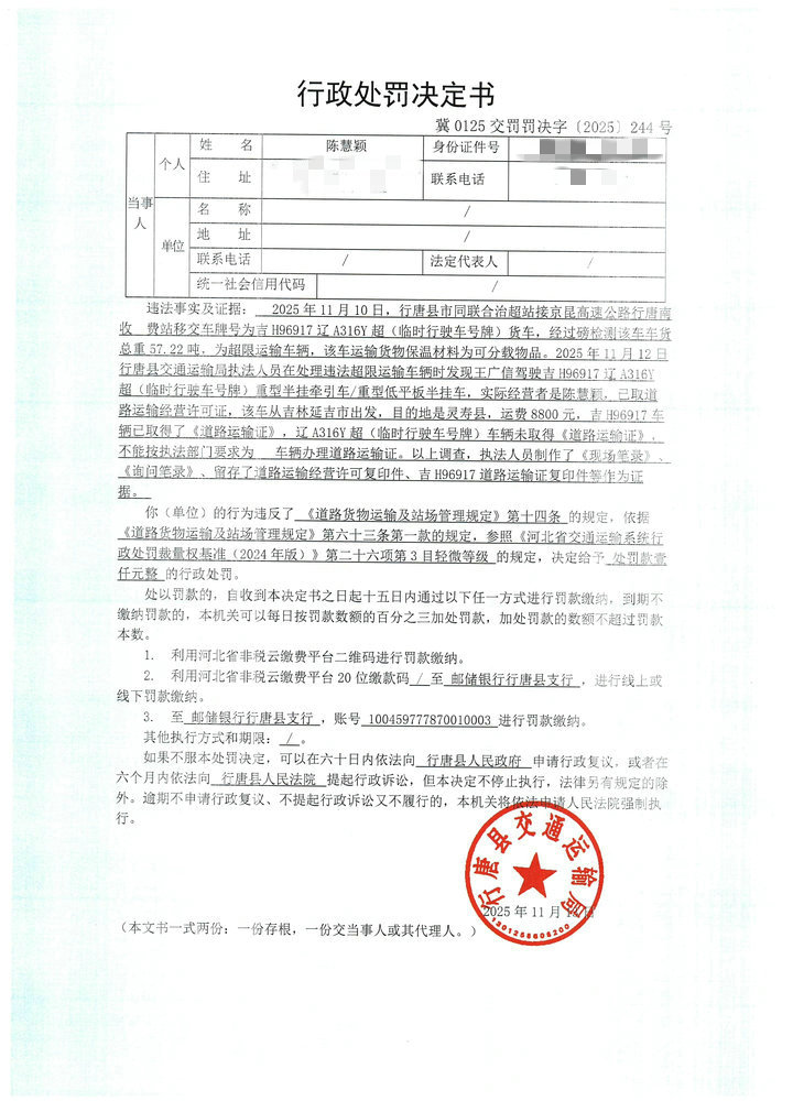 陈慧颖取得道路货物运输经营许可使用无道路运输证的辽A316Y超车辆参加普通货物运输案