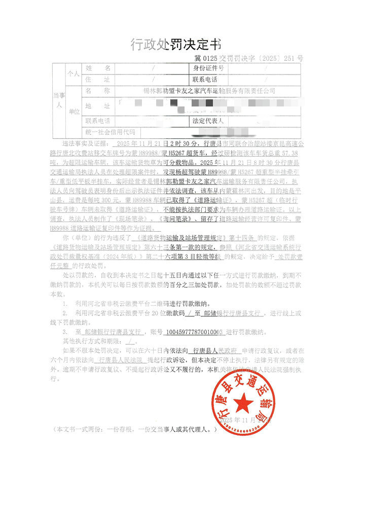 锡林郭勒盟卡友之家汽车运输服务有限责任公司取得道路货物运输经营许可使用无道路运输证的蒙H5267超车辆参加普通货物运输案
