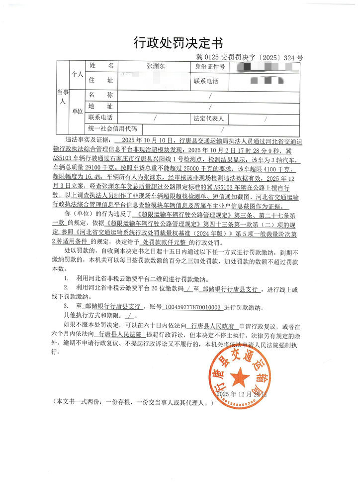 张渊东车货总质量超过公路限定标准的冀AS5103车辆在公路上擅自行驶行为案