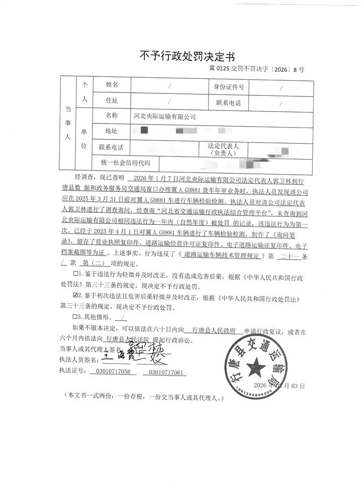 河北央际运输有限公司未按照规定的周期和频次对冀AGH881进行车辆检验检测案