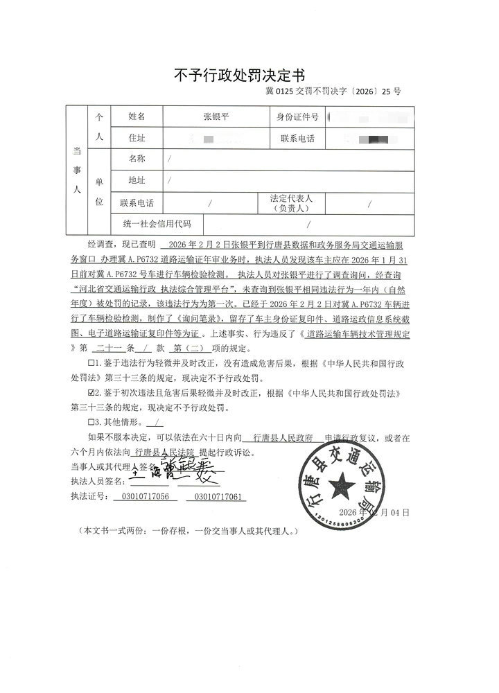 张银平未按照规定的周期和频次对冀A.P6732进行车辆检验检测案