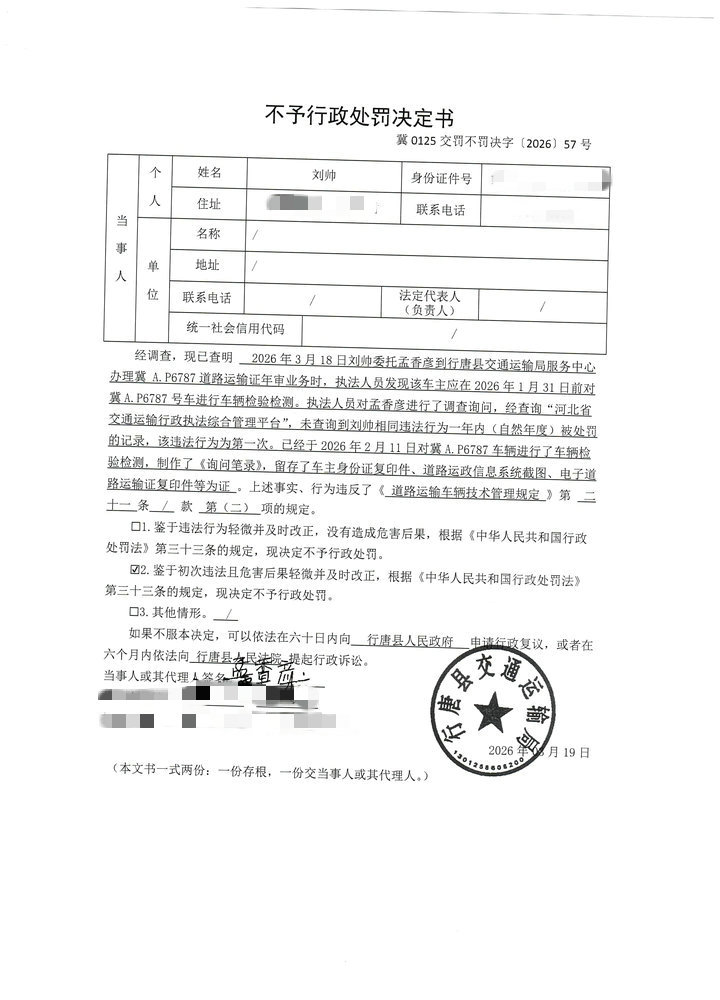 刘帅未按照规定的周期和频次对冀A.P6787货车进行车辆检验检测案