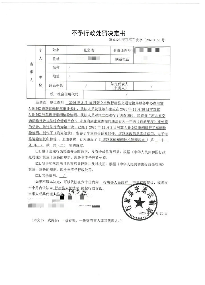 张立杰未按照规定的周期和频次对冀A.5476Z货车进行车辆检验检测案
