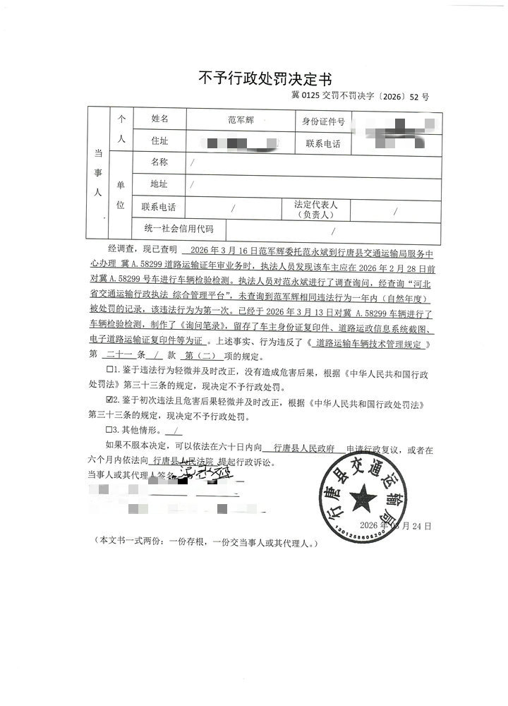 范军辉未按照规定的周期和频次对冀A.58299货车进行车辆检验检测案