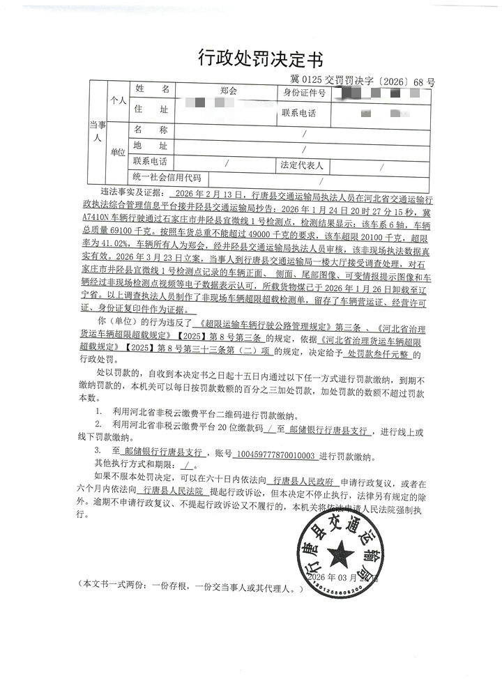 郑会车货总质量超过公路限定标准的冀A7410N车辆在公路上擅自行驶行为案