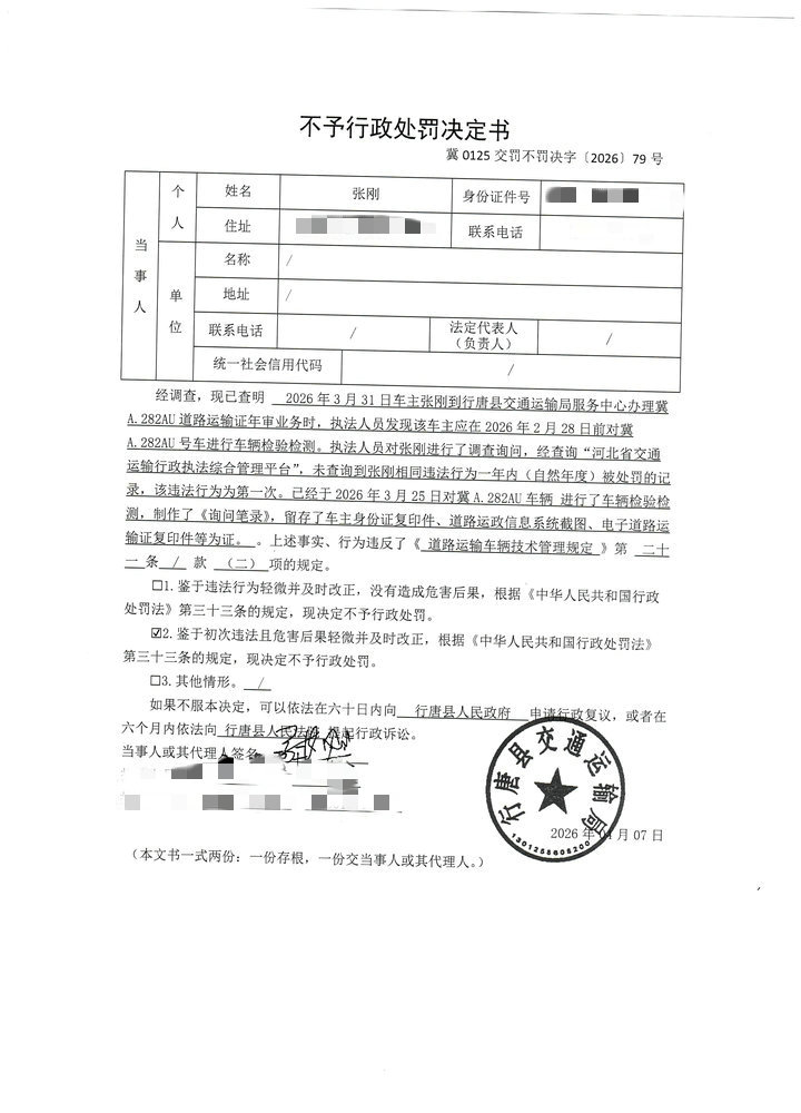 张刚未按照规定的周期和频次对冀A.282AU货车进行车辆检验检测案