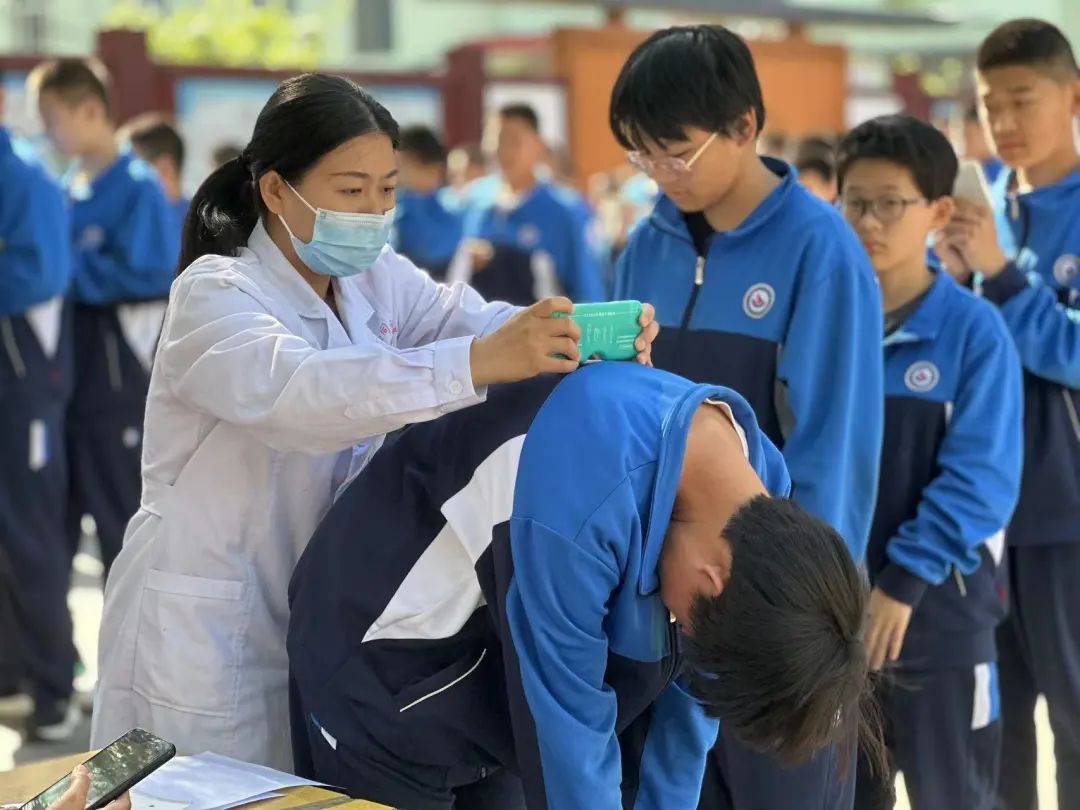 4月24日,行唐县卫健局组织医务人员走进实验中学开展了青少儿脊柱侧弯筛查及“龙引操”进校园宣传活动,切实提升青少年儿童健康素养。