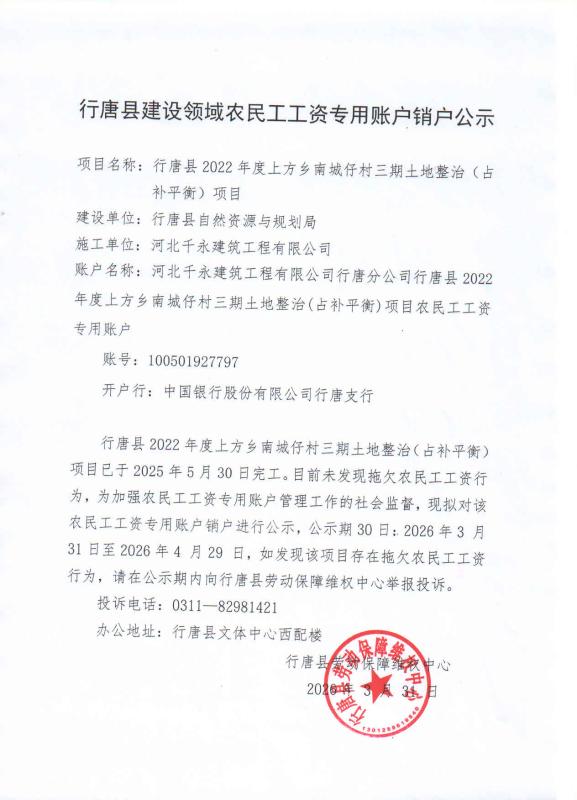 行唐县2022年度上方乡南城仔村三期土地整治(占补平衡)项目