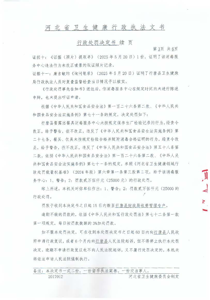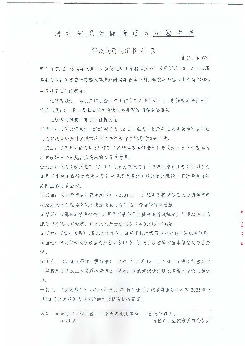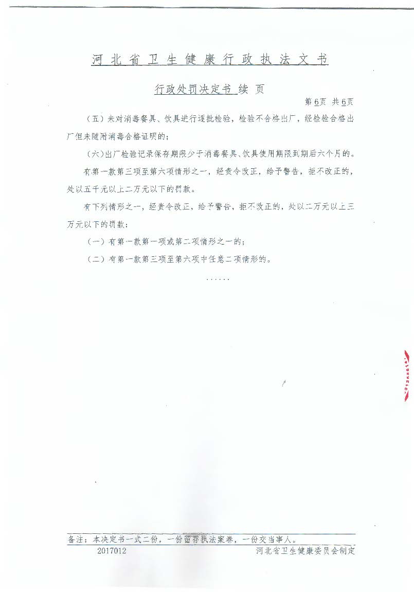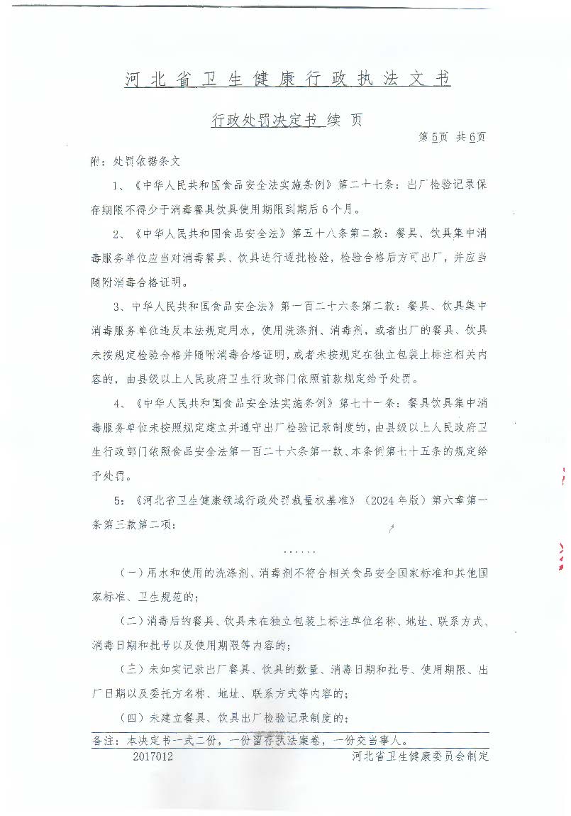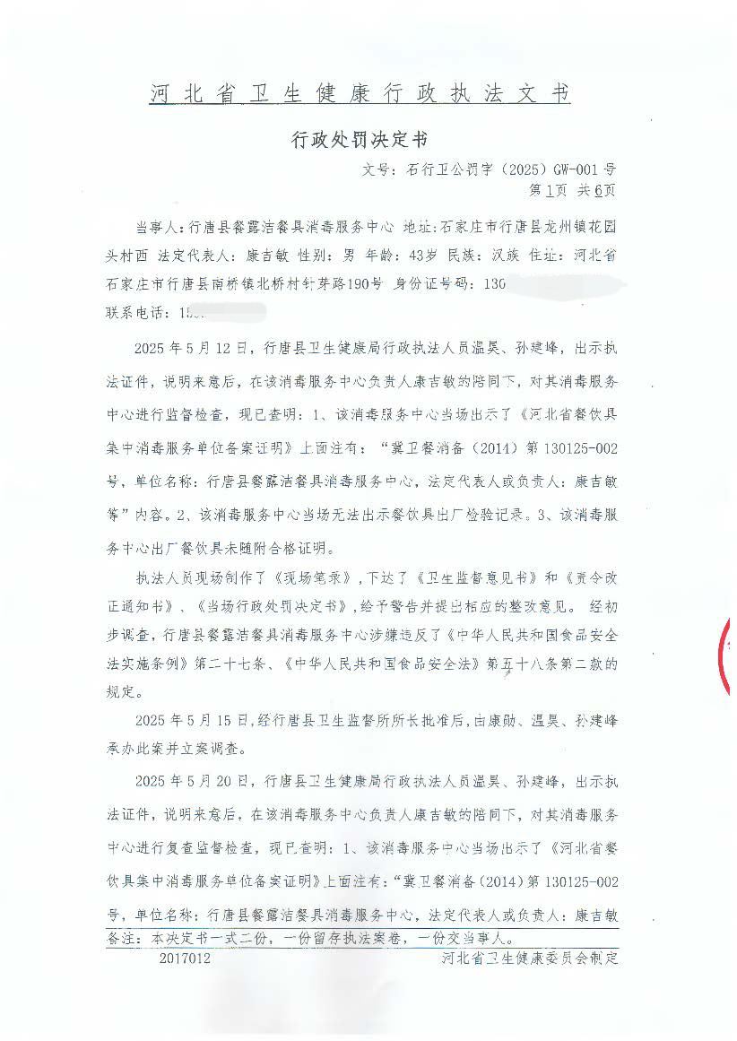 行唐县餐露洁餐具消毒服务中心未按规定保存出厂检验记录案