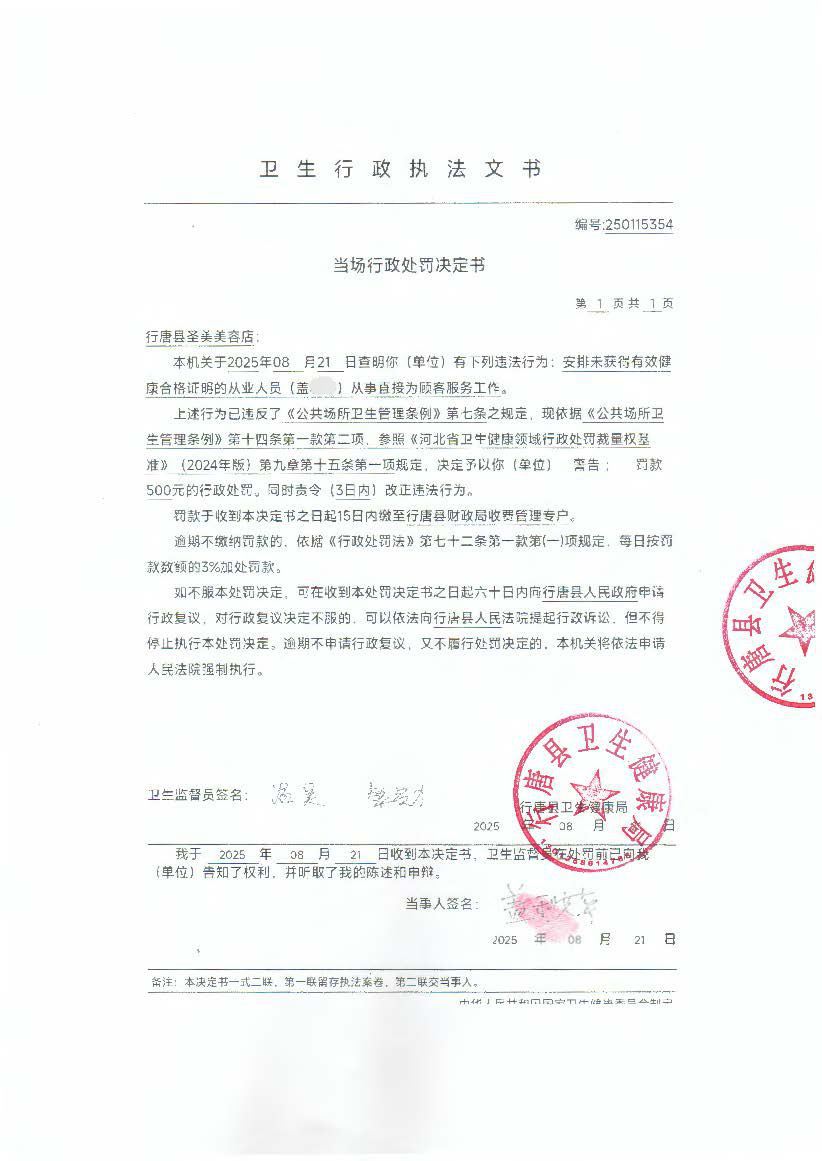 行唐县圣美美容店违反《公共场所卫生管理条例》案