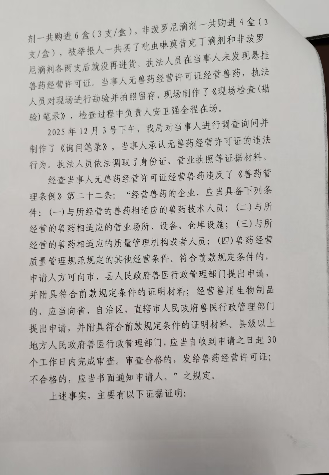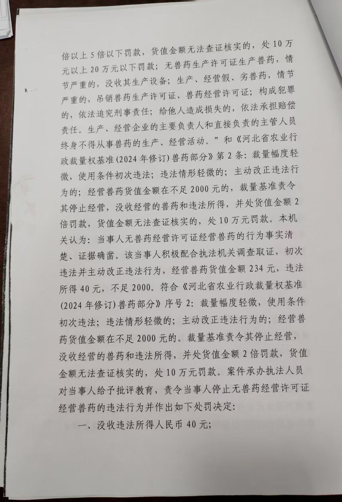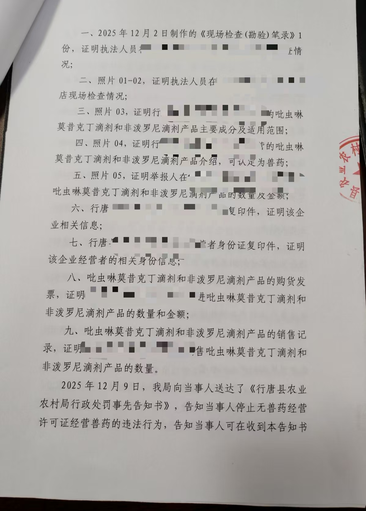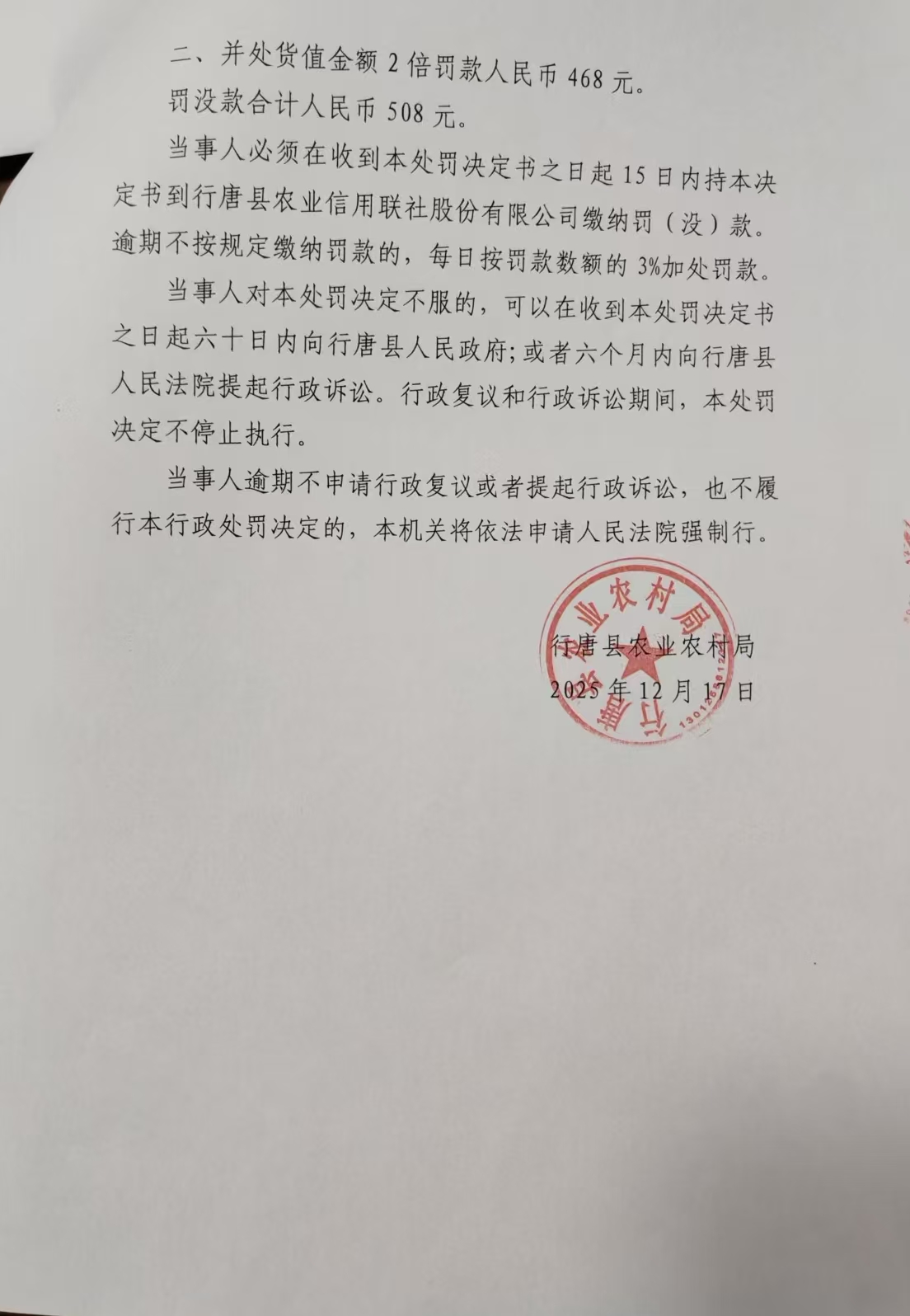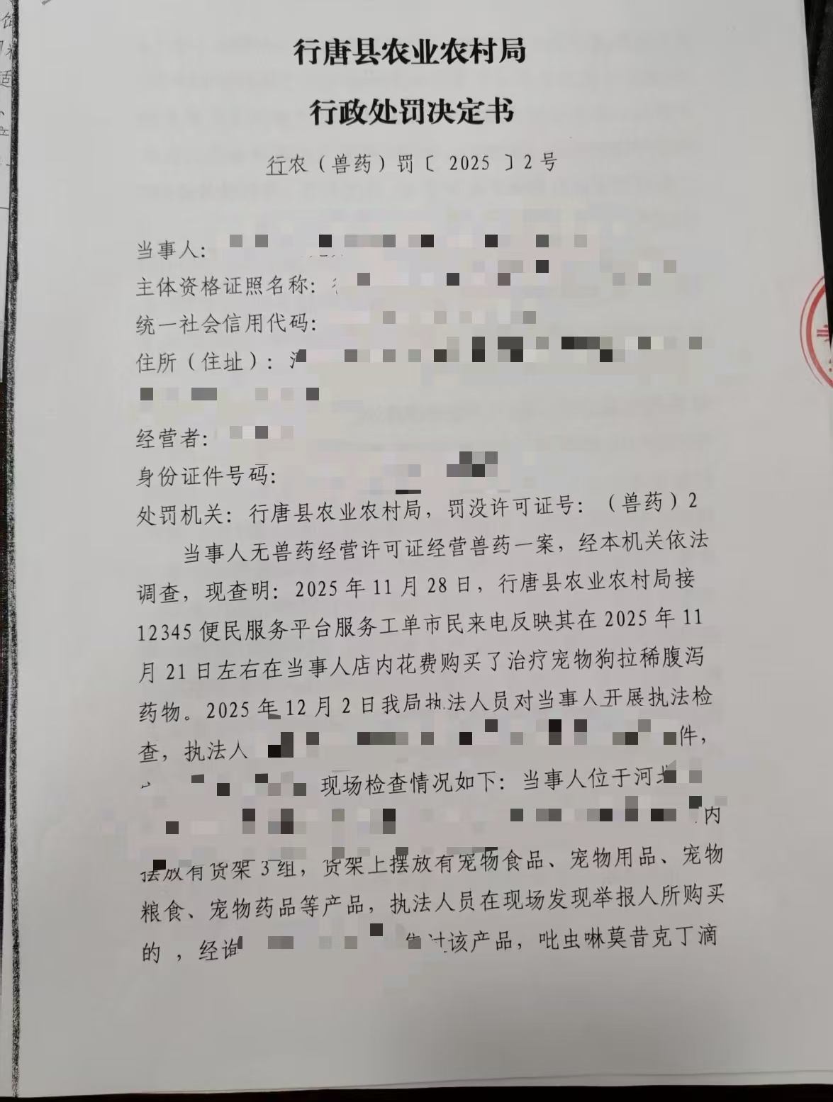 行唐县农业农村局行政处罚决定书